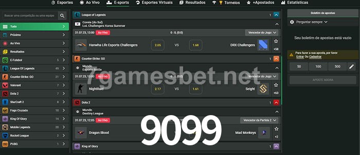 A aposta 9099 oferece aos jogadores a experiência mais conveniente de apostas em eSports!